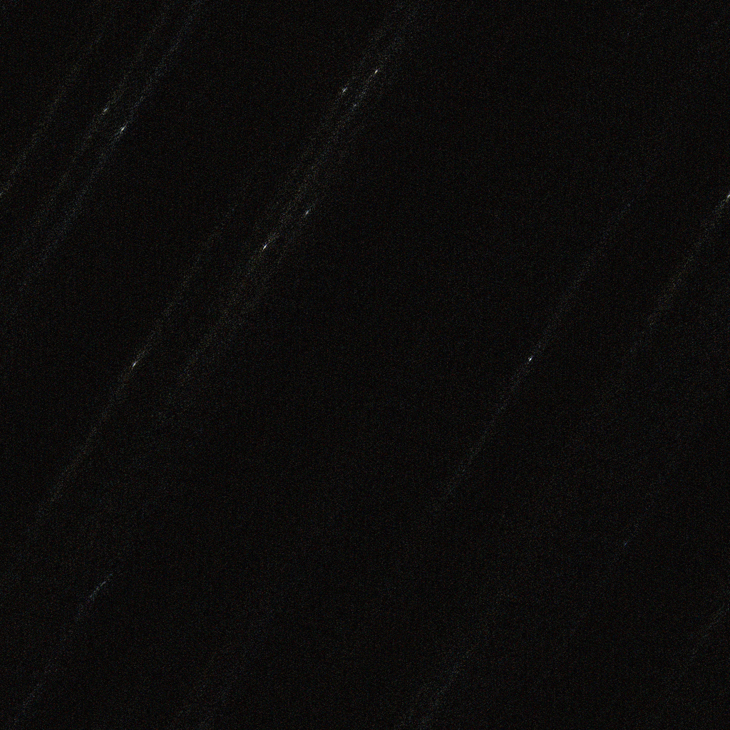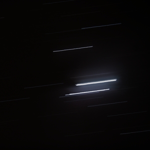 This technique relies on the theory that at any reasonable magnification, a star should appear to an Earth-bound observer as a point source. This is because stars are so distant; even Proxima Centauri, the closest star to Earth, is 4.22 light years, or 4E16 meters away. Normal stars are 7E7 meters in diameter, so the tangent of the angle subtended is 1.75E-9. That's roughly 1E-7 degrees. For a 2800mm telescope, the field of view is 0.7 degrees, so a star covers roughly a millionth of the image (which is less than a hundredth of a pixel on most cameras). Because a star appears as a point source, the observed image of a star should be precisely the point spread function of the optical process. Based on this idea, we proposed extracting parts of the image around star trails and using them unchanged as point spread functions for the deconvolution algorithms above. | ![]() |