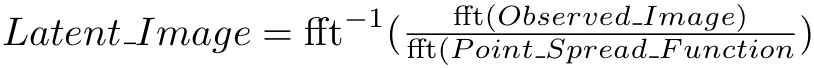The problem of recovering a latent image from a convolved one (termed deconvolution) is well-studied in the literature of digital photography. Assuming knowledge of the point spread function, there are several common techniques. That is, we wish to compute: