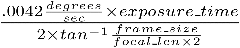 A variety of factors conspire to make high-resolution high-dynamic-range astrophotography a difficult task: the amount of incident light at Earth from objects tens or hundreds of light years away is very small, necessitating very large aperture lens systems. The celestial objects typically subtend small visual angles compared to terrestrial subjects, requiring long focal lengths (further confounding the aperture size problem). The Earth's atmosphere is often highly turbulent (or even cloudy), leading to difficulty creating a well-focused image from the ground; and Earth's axial rotation causes movement of the subjects. In this study, we focus on the last of these problems. The Earth's rotation about its axis causes astronomical objects to appear to move across the sky. Even at relatively low magnifications, astronomical images are highly susceptible to motion blur. In theory the motion blur is quite predictable, but in practice it is influenced by many other factors such as vibration and atmospherics. |