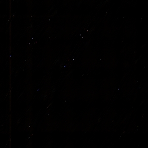 We used a Celestron NexStar 11GPS 2800mm Schmidt-Cassegrain telescope and a Canon Digital Rebel XT digital SLR camera to capture several astronomical images with tracking turned off. For comparison, we also captured tracked images. The images displayed below are of the Beehive Star Cluster (Messier Object #44) and the Orion Nebula (Messier Object #42). They were taken with 30 second exposures at ISO 1600. A reducer corrector was used to give the telescope an effective focal length 1800 mm. In order to meet reasonable time requirements, we cropped and downsampled images to a resolution of 1024x1024 from 3456x2304. The color channels were extracted from RAW images and kept in 16 bit image formats in order to exploit the full dynamic range of the Digital Rebel's 12 bit Analog/Digital converter. All processing was done with 64 bit floating point arithmetic.
