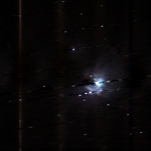 This method worked well for the isolated star case on the left, but produced very blury results for the nebula on the right. These problems are probably partially due misfocus, certain telescope aberrations and CCD problems which may have caused parts of the streak to be overexposed and spread to surrounding pixels. These problems lead to a gaussian fall off in intensity in the direction perpendicular to the streak which is difficult to rectify through deconvolution. Also, it is possible that aperiodic camera noise in readout and certain "bad pixels" caused the some inconsistancies in the streak.