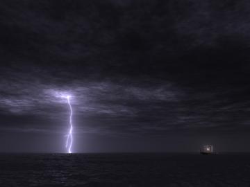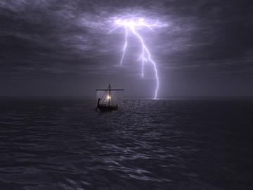 Our goal was to render an electric storm striking an ocean. We both took several years of ancient Greek in high school, so we decided to theme the picture along those lines; they scene is supposed to represent a Greek ship lost on its way to battle. Here are a couple of lightning photographs that we found inspirational while working on the project: