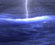 The ocean is raytraced using Musgrave's QAEB-tracing algorithm [5]. Precise procedural normals are available from the underlying analytically defined surface. Reflection rays are generated upon collision, and weighted by a function of their incident angle. We did not trace any rays underwater, but we did use an approximation to the subsurface scattering caused by the bright lightning: