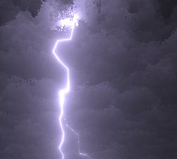 The lightning's reflection through the clouds was accomplished through a photon map, as described above; we used uniform random sampling of the lightning to generate photon initial positions, and traced their paths through the clouds to generate the photon map. Diffuse shading calculations integrated the lightning uniformly by arc length.